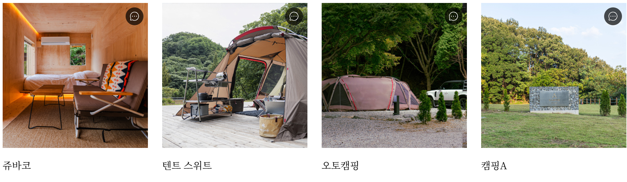캠프필드는 총 4가지 숙영 형태로 구성되어 있습니다.